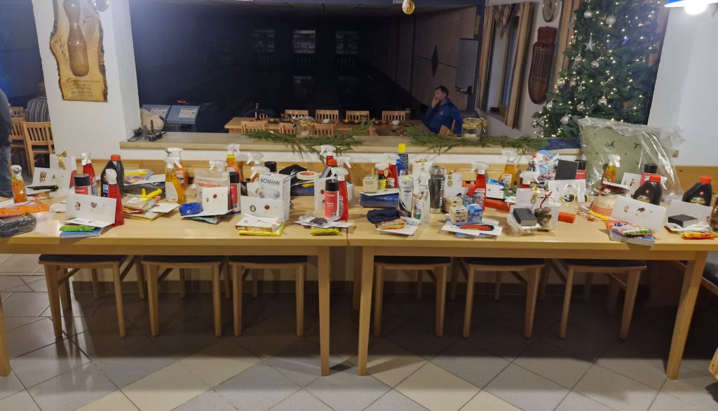 Auch in diesem Jahr gab es wieder eine große Auswahl an Preisen für unser Weihnachtskegeln